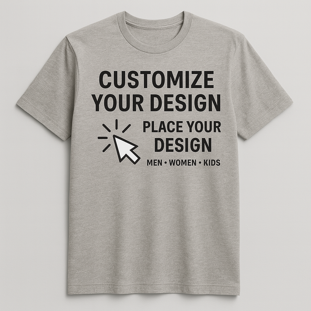 Upload your own design and create personalized T-shirts, hoodies, and sweatshirts for men, women, and kids. Choose your product, place your artwork, and get your custom clothing printed exactly the way you want.